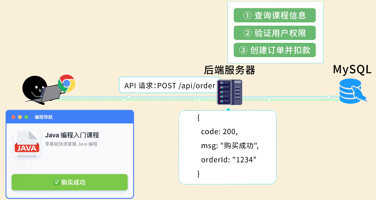 而当用户点击操作按钮后,触发的操作验证、数据查询、业务逻辑处理等种种 “看不到” 的操作,都由后端来完成。