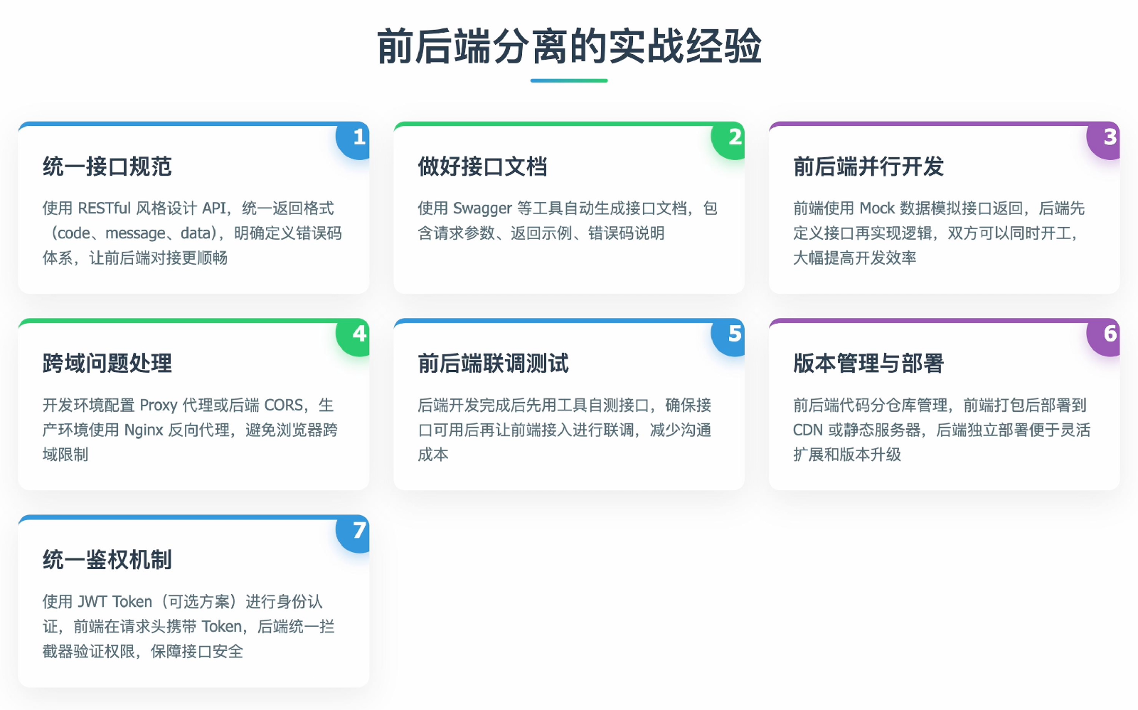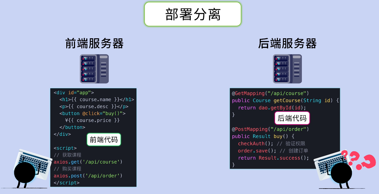 鱼皮指着你之前列出的问题说:前后端分离就是专门解决这些痛点的!