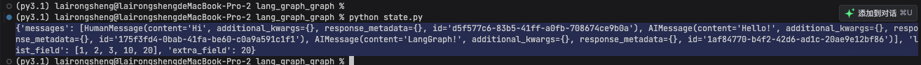 可以看到代码中添加的两个 AIMessage,还有 list_field 和 extra_field