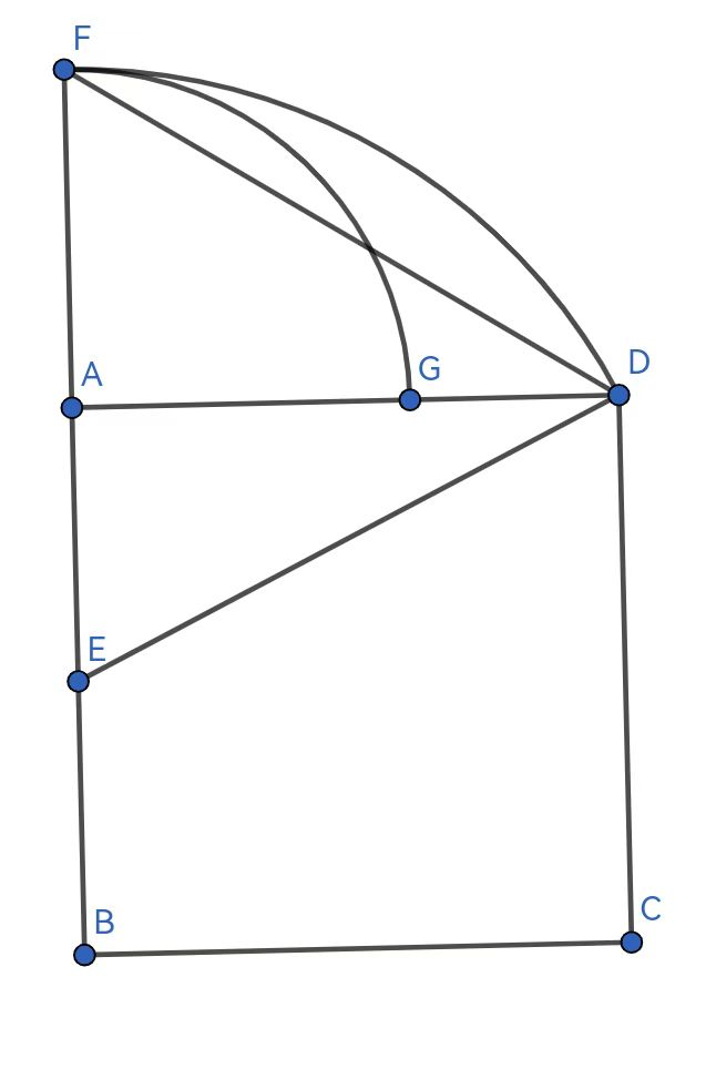 (2)如图,正方形 \(ABCD\) 中,点 \(E\) 是 \(AB\) 中点,再射线 \(BA\) 上取一点 \(F\),使得 \(EF = ED\)。再在线段 \(AB\) 上取一点 \(G\) 使得 \(AG = AF\)。 求证:点 \(G\) 是线段 AD 黄金分割点。
