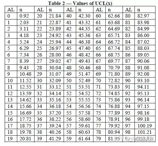UCL :Unit Confidence Level,信心系数。这里涉及到统计学的知识此处略过,UCL可直接查表得到。