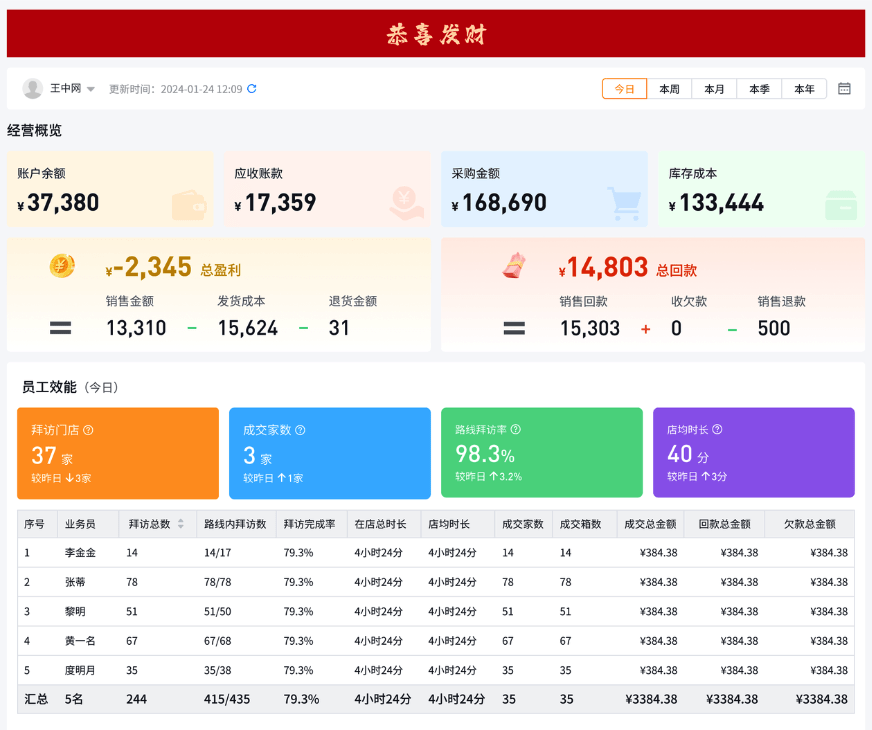 经销商借助该系统,一方面充分获取品牌商的赋能支持,实现数据获取、采购协同、营销活动支持等;另一方面,经销商可以用其实现自己全面的生意管理,从客户管理、到进销存、到拜访、到 TPM 营销活动,再到财务对账、看业务财务报表等,是经销商生意的好助手。