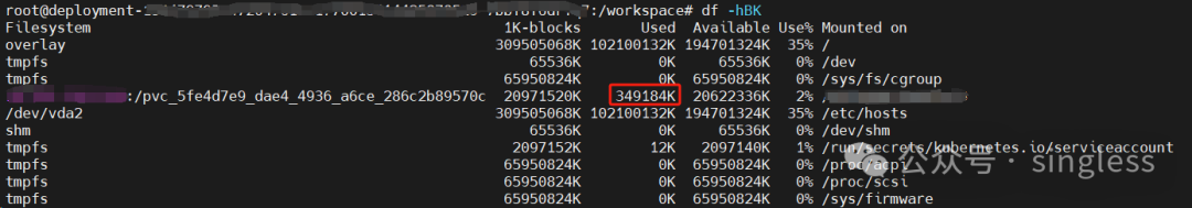 可以看到下图的pvc已用容量为357564416,单位为byte。也就是349184 Kb