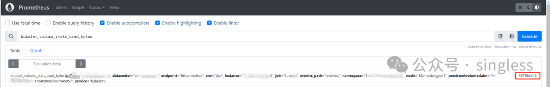 查询某个指标,例如kubelet_volume_stats_used_bytes