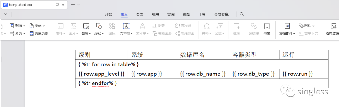 - tpl = DocxTemplate(template_doc):打开一个docx默认模板