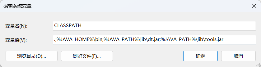CLASSPATH:.;%JAVA_HOME%\bin;%JAVA_PATH%\lib\dt.jar;%JAVA_PATH%\lib\tools.jar