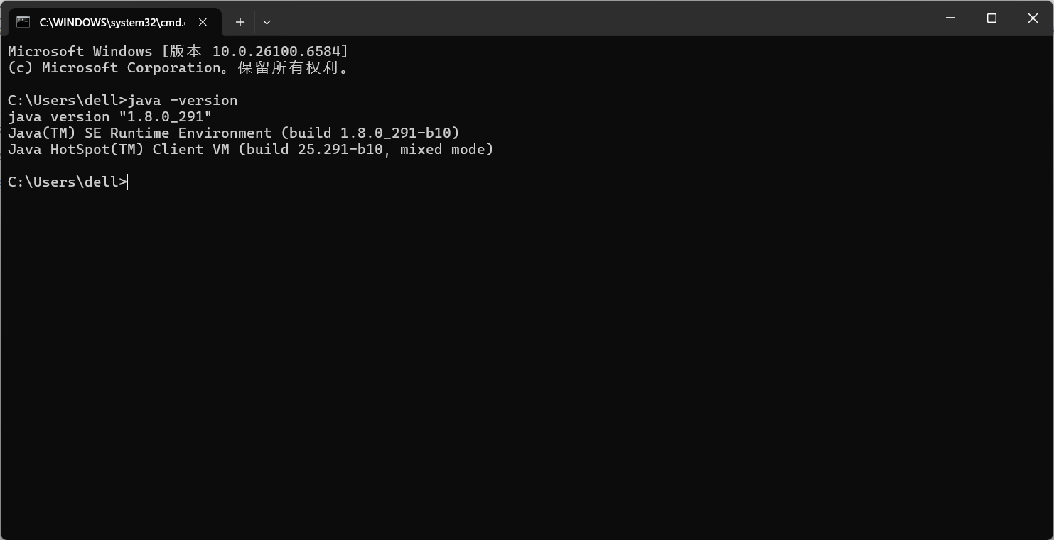 2、执行JAVA -version后显示版本号即为安装成功
