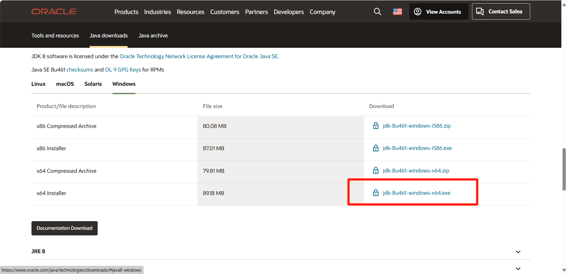 安装包链接:jdk-8u461-windows-x64.exe