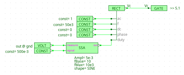 - signal 连接大信号(一个固定占空比数值 0.5),out 连接需要被扰动的对象 duty,measure 连接输出信号 \(V_{out}\):