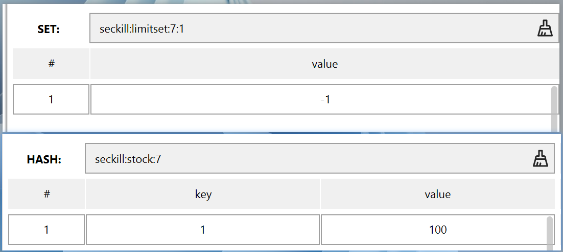 Redis里面数据也生成了:【set里面是弄限购的,如果已经买过了就不能再买了,hash是存库存的】