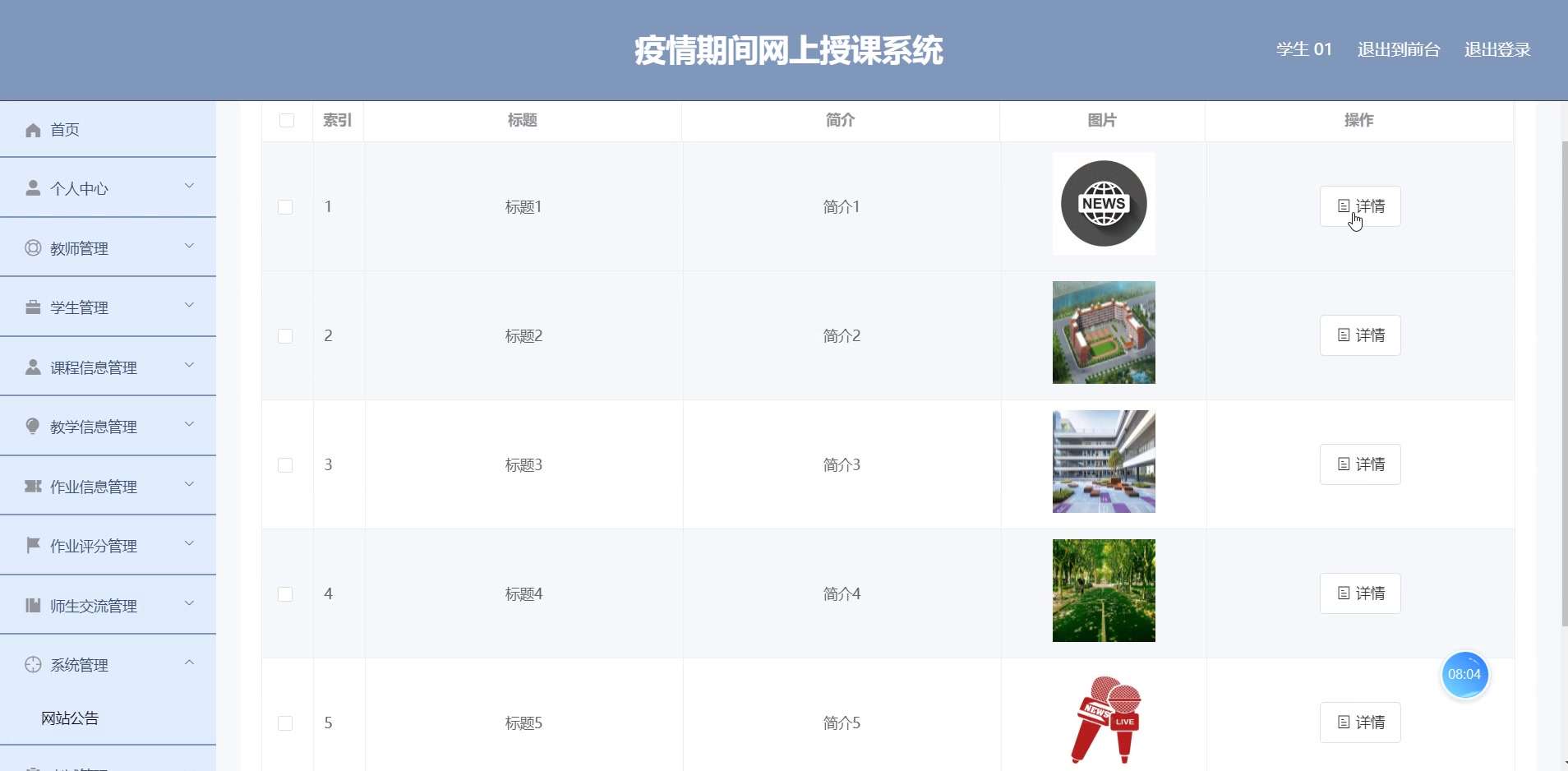 基于Java+SSM+Flask网上授课体系(源码+LW+调试文档+讲解等)/在线教育平台/网络教学软件/远程授课器具/在线课程系统/网课平台/视频教学系统/网上教学平台/网络教育系统