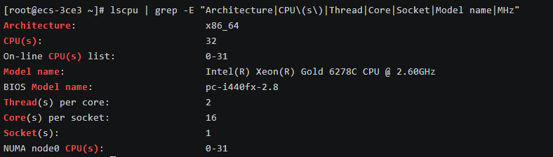 lscpu | grep -E "Architecture|CPU\(s\)|Thread|Core|Socket|Model name|MHz"
