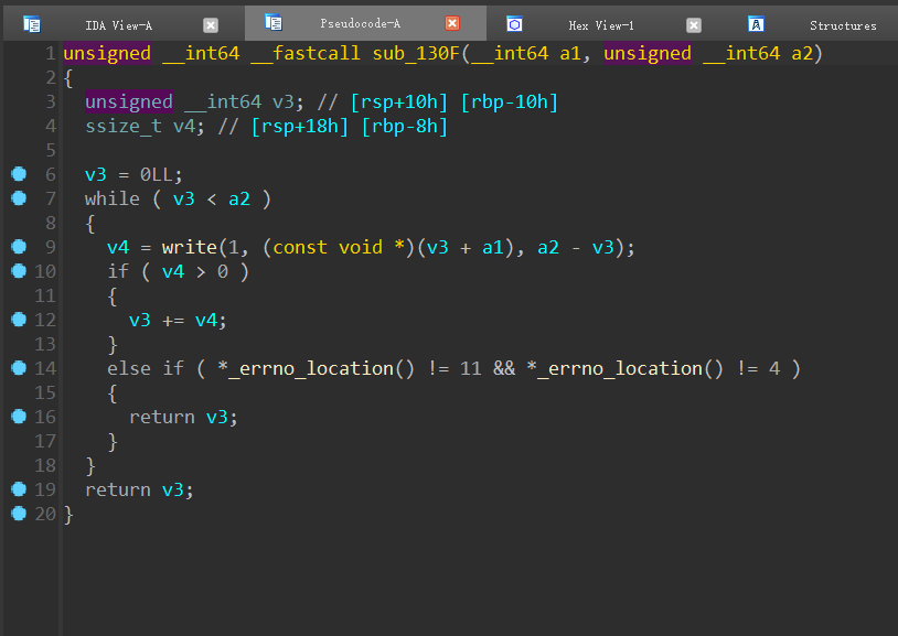 检查dump函数,发现是读取控制结构中的size并全部输出