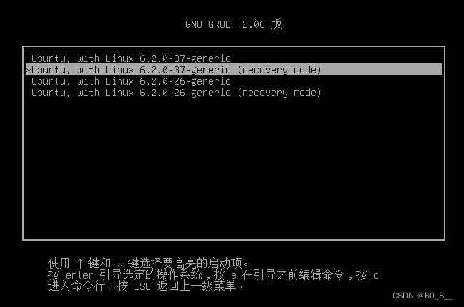 2.选择一个较新版本的recovery mode,按下回车