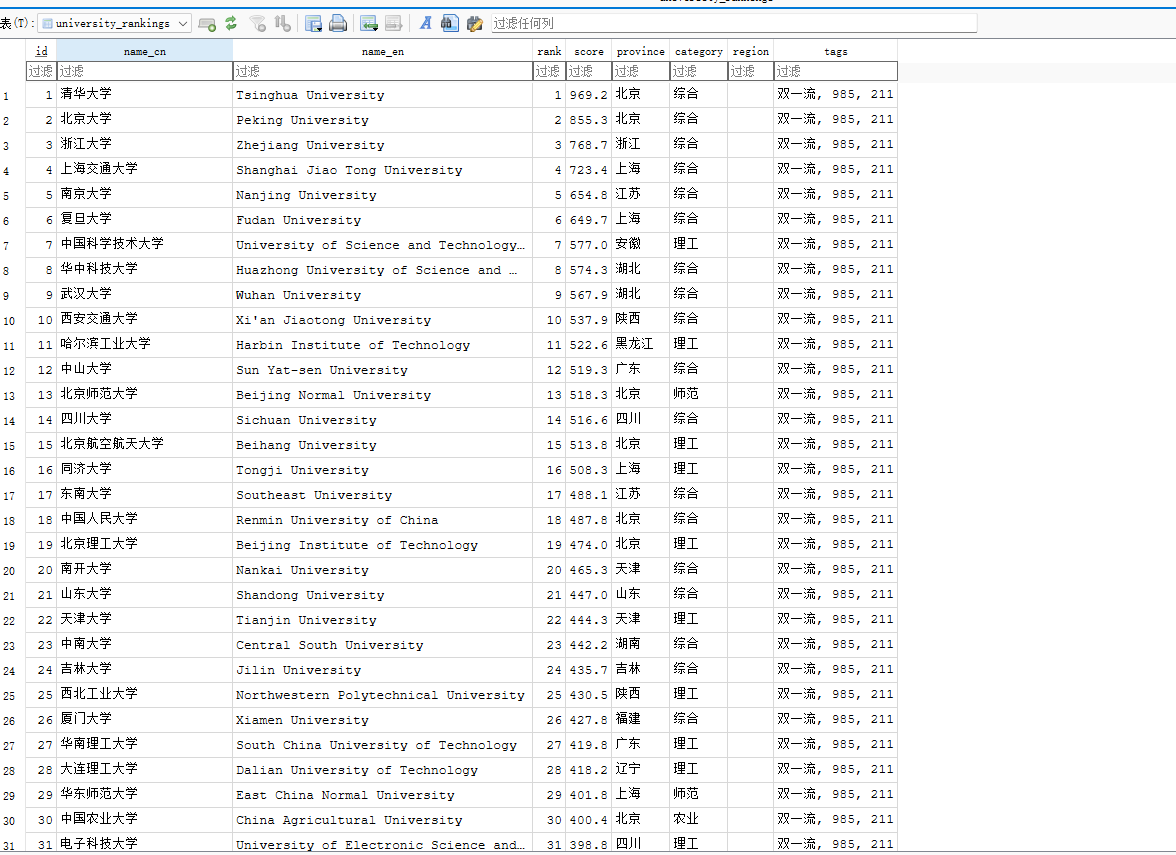 –要求:爬取中国大学2021主榜(https://www.shanghairanking.cn/rankings/bcur/2021)所有院校信息,并存储在数据库中,同时将浏览器F12调试分析的过程录制Gif加入至博客中。