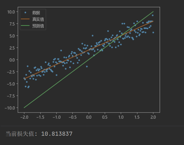 print("当前损失值: %1.6f" % loss(model(x), y).numpy())