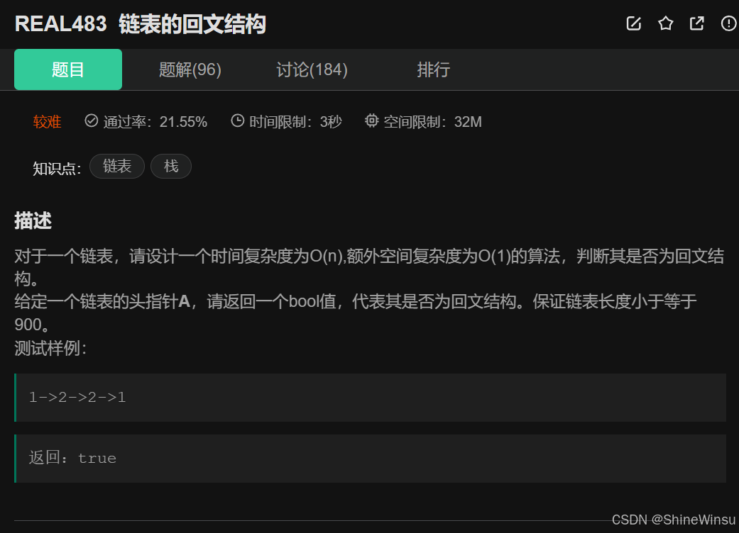 REAL483 链表的回文结构: