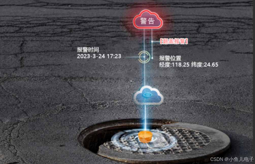 - 倾角监测模块:监测井盖的倾斜角度,识别井盖是否移位、翻转甚至缺失;