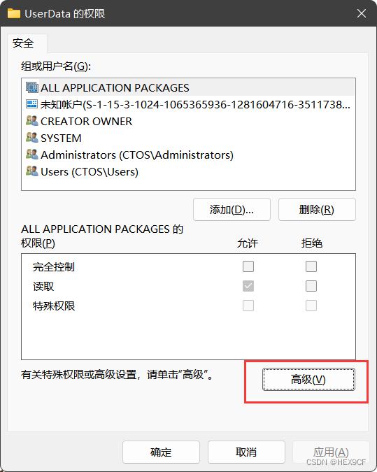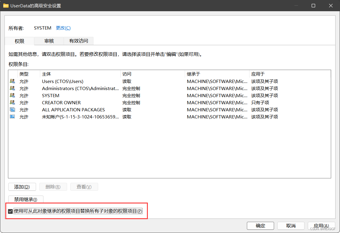 Administrators,然后勾选使用此对象继承的权限项目替换所有子对象的权限项目。