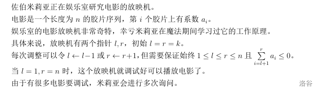 signed main(){double beg=clock();read(T);while(T--){read(n),read(k);LL mx1=LLONG_MIN,mx2=LLONG_MIN,mn1=LLONG_MAX,mn2=LLONG_MAX;for(int i=1;i<=n;i++){read(a[i]);a[i]+=a[i-1];if(i<=k) mx1=max(mx1,a[i]),mn1=min(mn1,a[i]);if(i>=k) mx2=max(mx2,a[i]),mn2=min(mn2,a[i]);}if(a[1]<a[n]||mx1<mx2||mn1<mn2){puts("No");continue;}int pos1=0,pos2=0;for(int i=1;i<=k;i++) if(a[i]==mx1){ pos1=i; break; }for(int i=k;i<=n;i++) if(a[i]==mn2){ pos2=i; break; }for(int i=1;i<=pos1;i++) b[i]=a[i];for(int i=n,j=1;i>=pos2;i--,j++) c[j]=a[i];bool flag=check(pos1,n-pos2+1);if(!flag){puts("No");continue;} for(int i=k,j=1;i>=pos1;i--,j++) b[j]=a[i];for(int i=k,j=1;i<=pos2;i++,j++) c[j]=a[i];flag=check(k-pos1+1,pos2-k+1);puts(flag?"Yes":"No");}cerr << "Time: " << (clock()-beg) << endl;return 0;