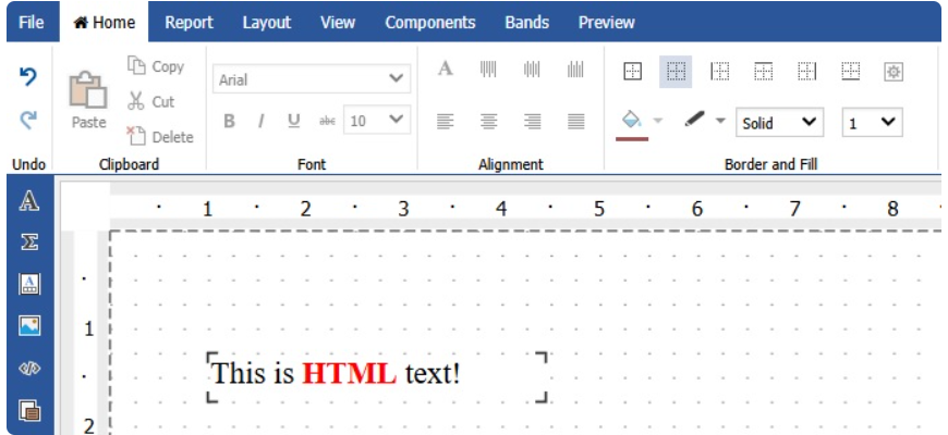 HTML 对象组件的实现,使得可以直接在报表中显示 HTML 内容成为可能。这为使用 HTML 标记格式化文本、嵌入表格、列表和其他格式化内容提供了广阔的可能性。该组件能够正确处理 HTML 标签、应用样式,并允许用户使用熟悉的 HTML 语法在报表中创建结构复杂的内容。