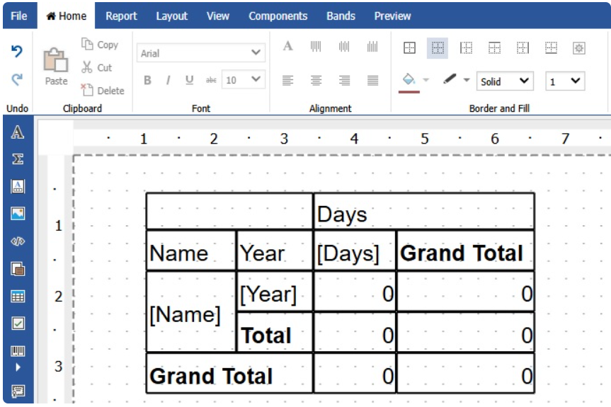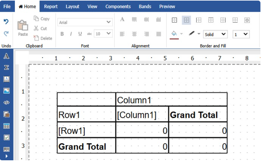 新增了交叉表组件——一个无需直接连接数据源即可创建交叉表和透视报表的强大工具。交叉表组件可处理已通过其他组件(例如数据带)加载到报表中的数据,从而能够同时按多个维度对数据进行分组,并创建带有自动总计计算功能的矩阵视图。该组件支持自定义行和列、应用各种聚合函数(求和、平均值、计数)、单元格格式设置以及创建多级分组。