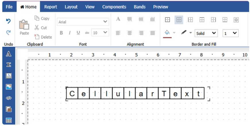 单元格文本组件用于在单元格内显示文本。该组件将文本的每个字符放置在单独的单元格中,因此非常适合显示每个单元格只能显示一个字符的数据(例如,序列号、代码、文档编号)。