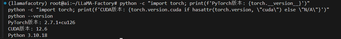 python -c "import torch; print(f'CUDA版本: {torch.version.cuda if hasattr(torch.version, \"cuda\") else \"N/A\"}')"
