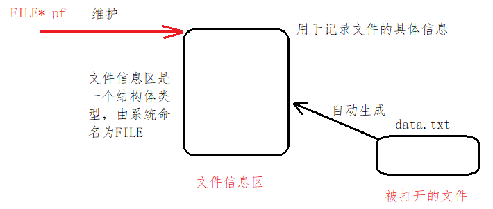 pf是一个指向FILE类型的指针变量。可以使pf指向某个文件的文件信息区(一个结构体变量)。pf通过该文件信息区里的信息可以访问该文件。也就是说,通过文件指针变量能找到与它关联的文件。