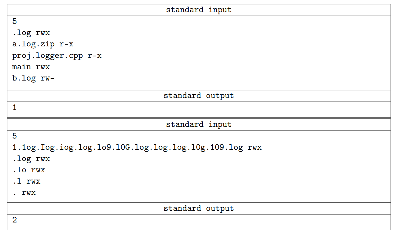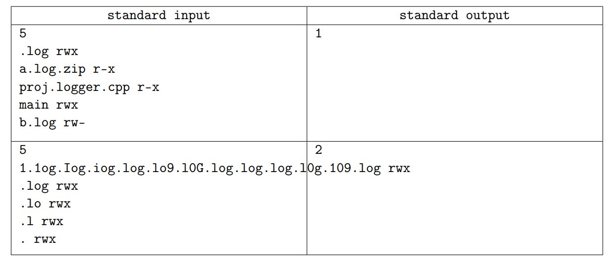 \texttt{rwx} 分别代表读入权限、写入权限和执行权限,如果没有其中某个权限则会代替为 \texttt{"-"},例如只有读入权限没有写入和执行权限为 \texttt{"r--"}。