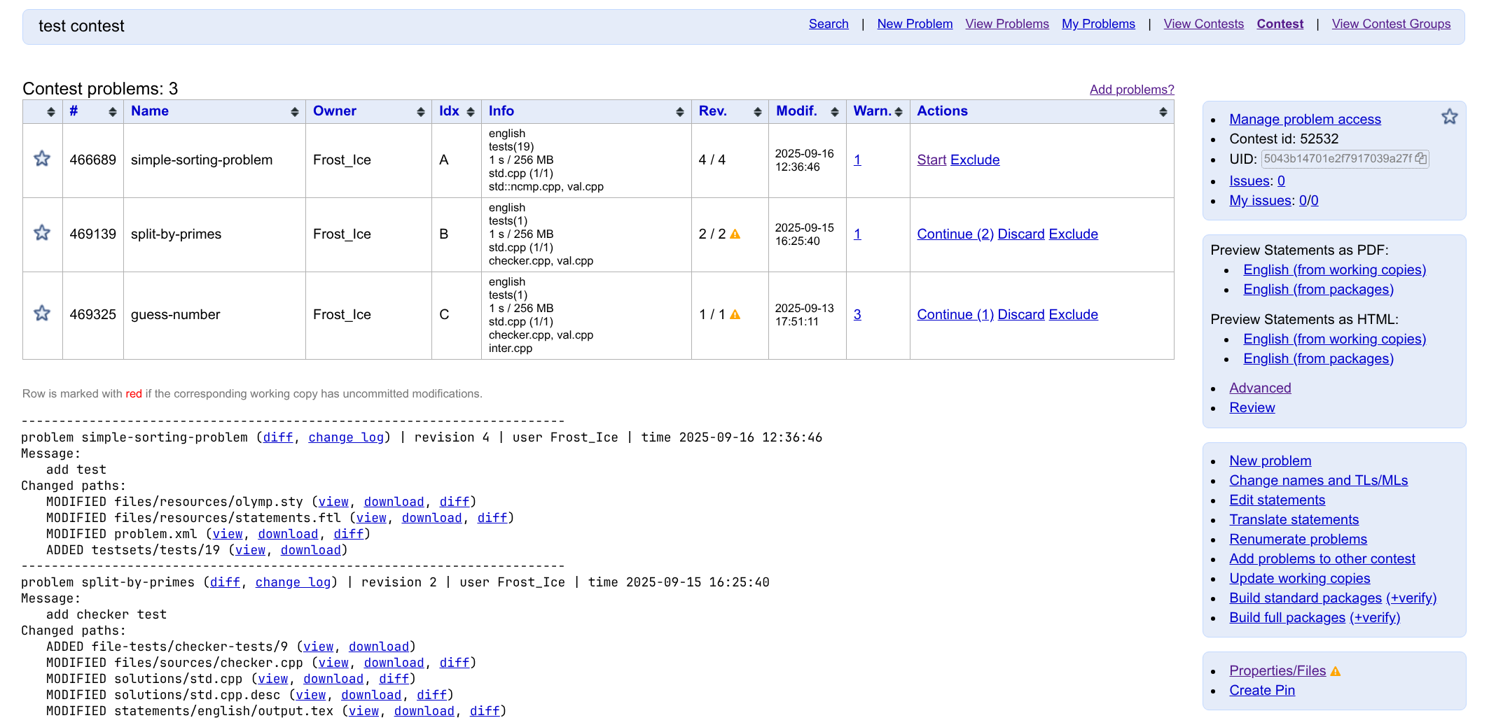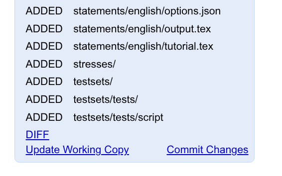 你对题目进行编辑之前,Polygon 会先创建一个工作副本(working copy)。你所有的修改都将基于该工作副本进行。页面右下角,我们可以看到目前有哪些文件是我们修改过的。