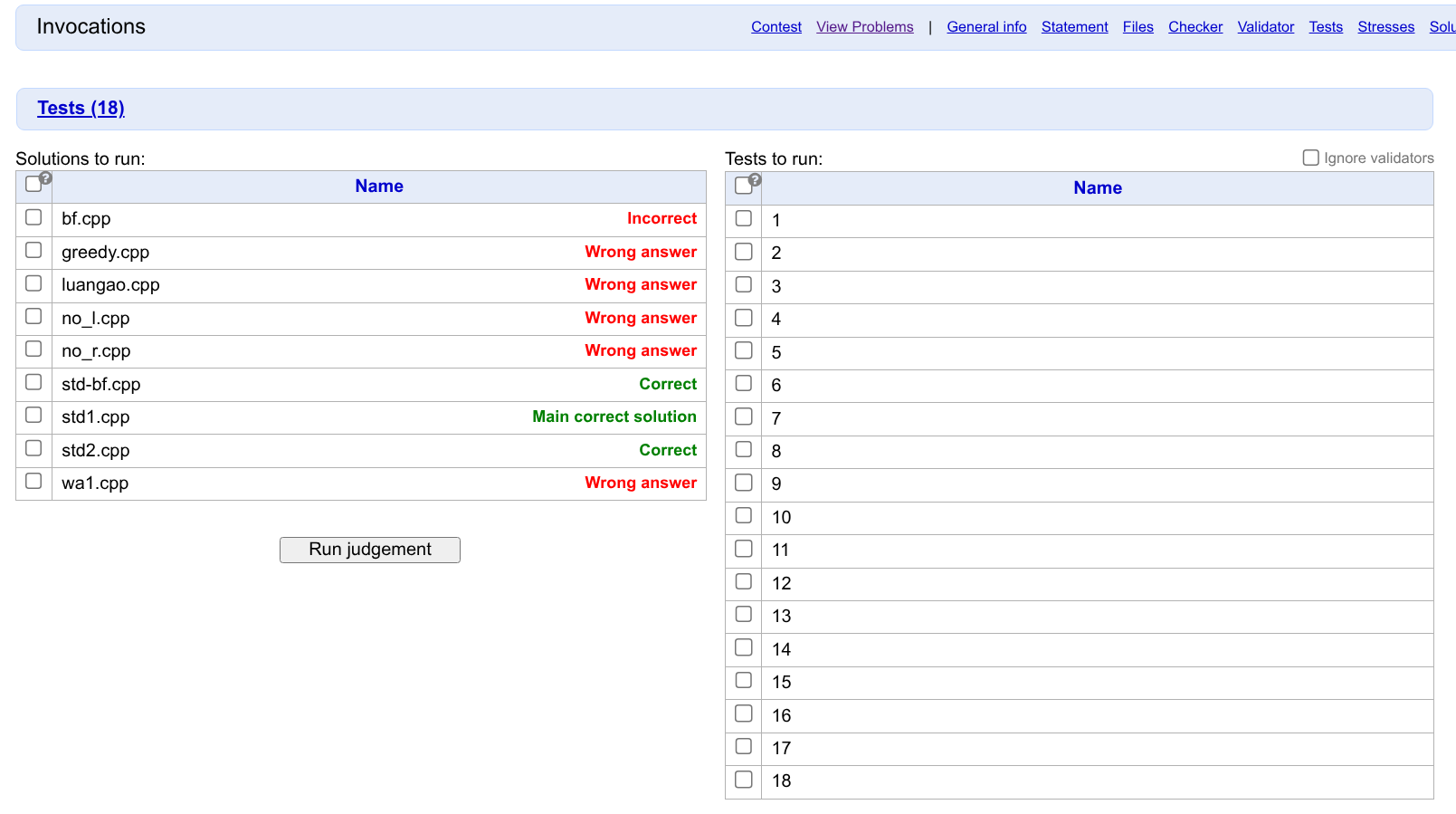 - 可以为 Solutions 设置标签,错解 AC、正解未 AC 都会警告,方便地逐一卡掉错解。