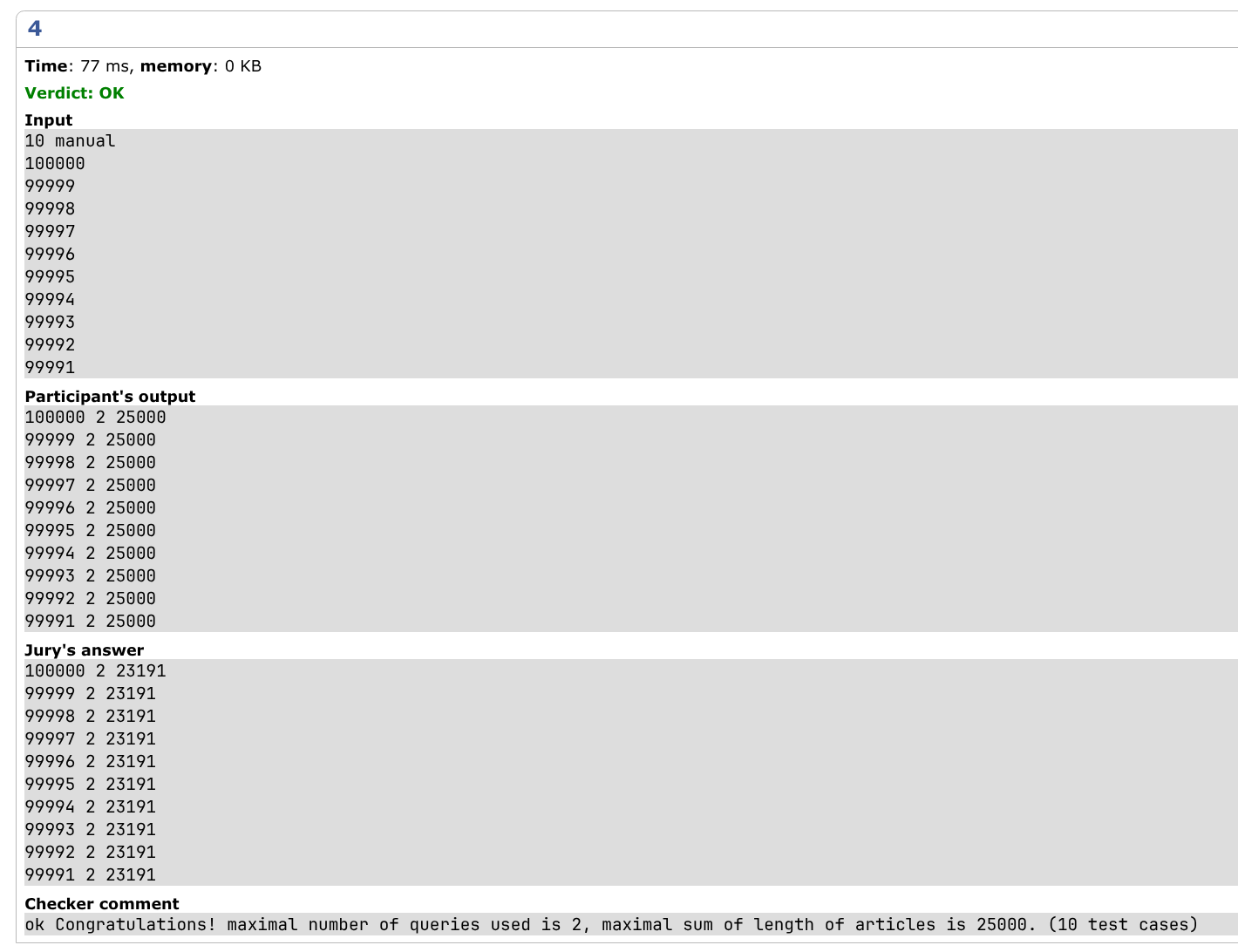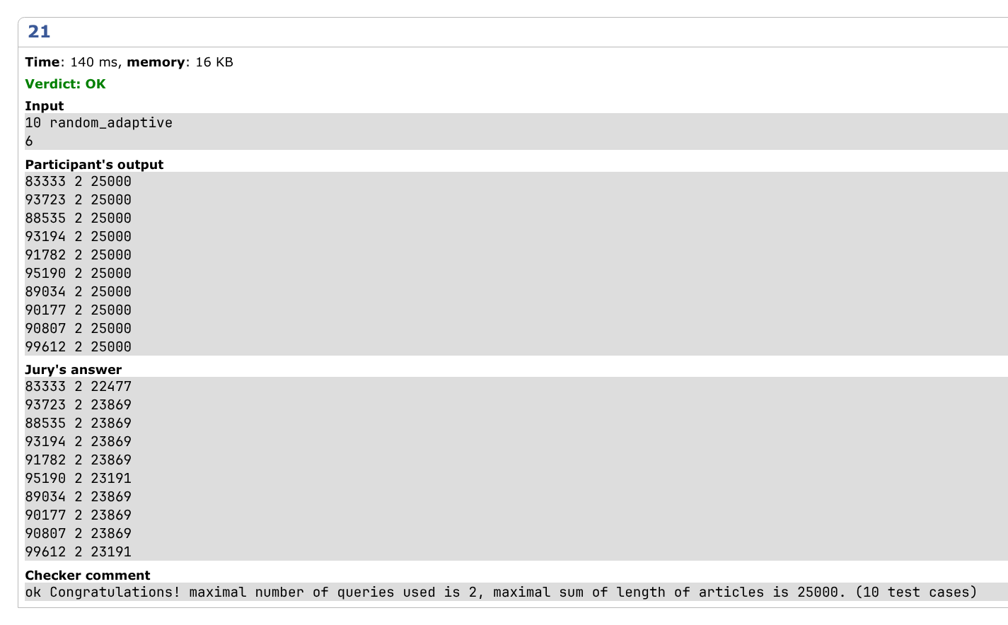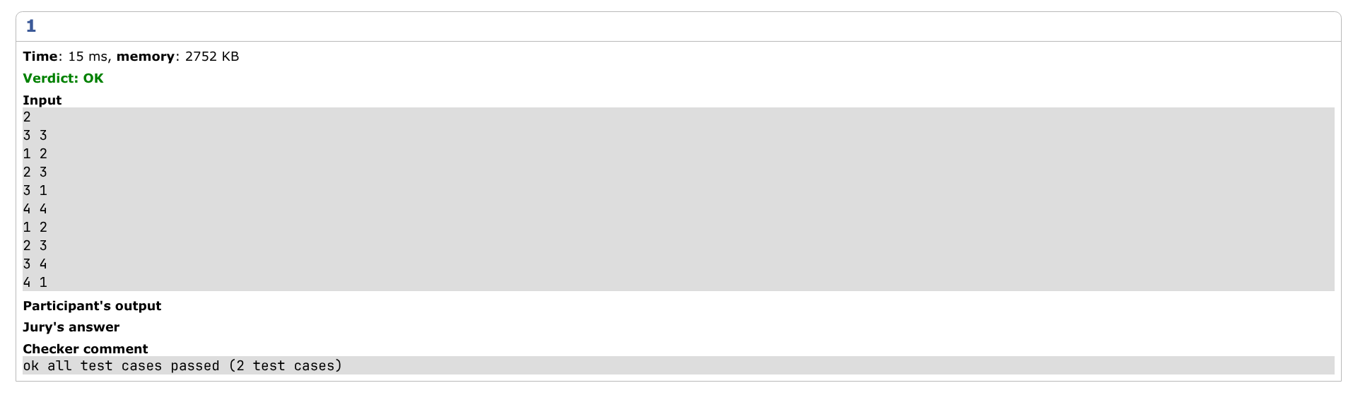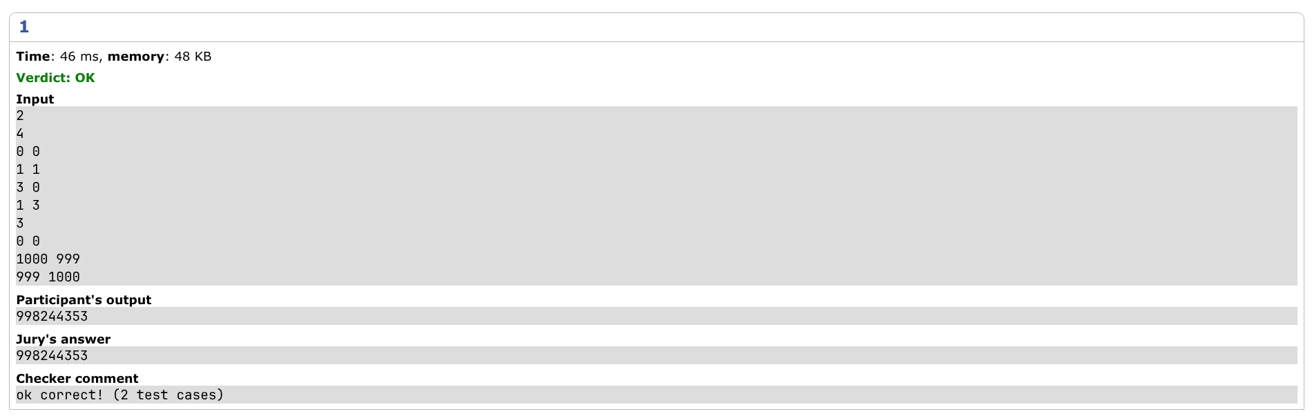 | Correct solution | 所有数据的运行结果只能是 AC。std 以外的能够 AC 的代码可以标记成此类。 | |