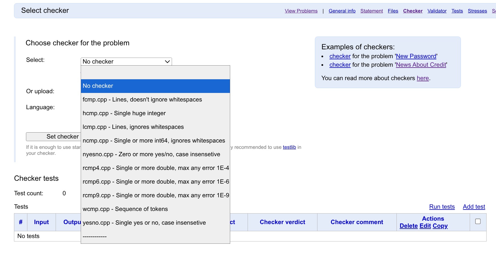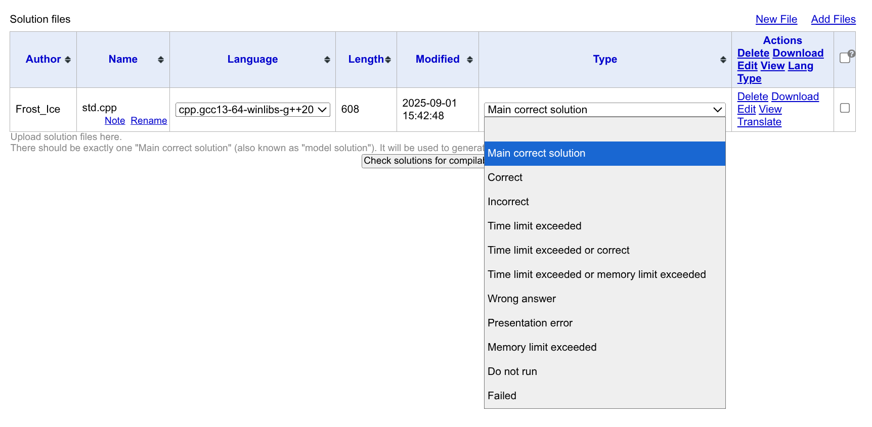 在 Solution files 页面,你可以上传题目代码。
