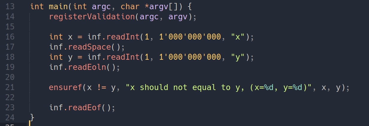 testlib Validator 使用教程:https://codeforces.com/blog/entry/18426