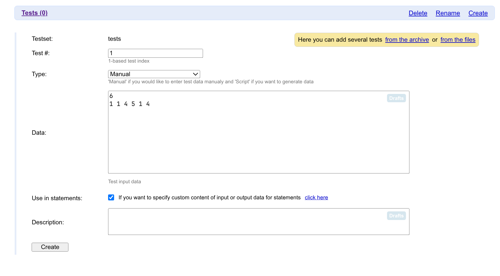 点击 Create 完成题面的创建。
