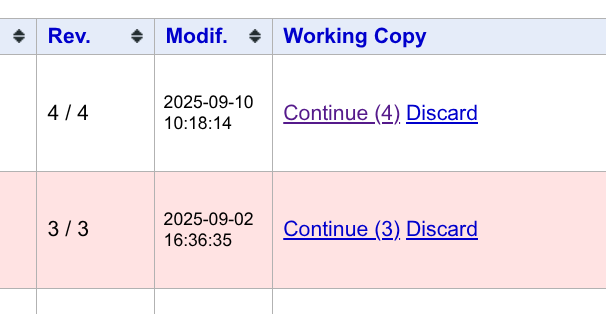 假设当前已有 \(N\) 个版本。当你点击 revert 时,可将当前工作副本回退到某个历史版本 \(K\)。你可以在该版本基础上进行修改,commit 后会产生新版本 \(N + 1\)。版本 \(K + 1\) 到 \(N\) 之间的所有历史记录均会保留,不会被覆盖掉。
