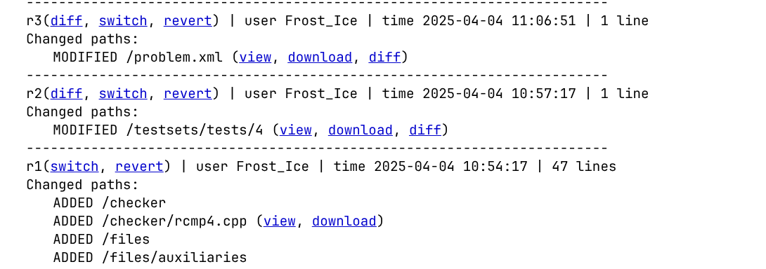 Polygon 也具有类似 git 的版本管理机制。虽然细节上不一定足够智能,但是也足够团队出题用了。