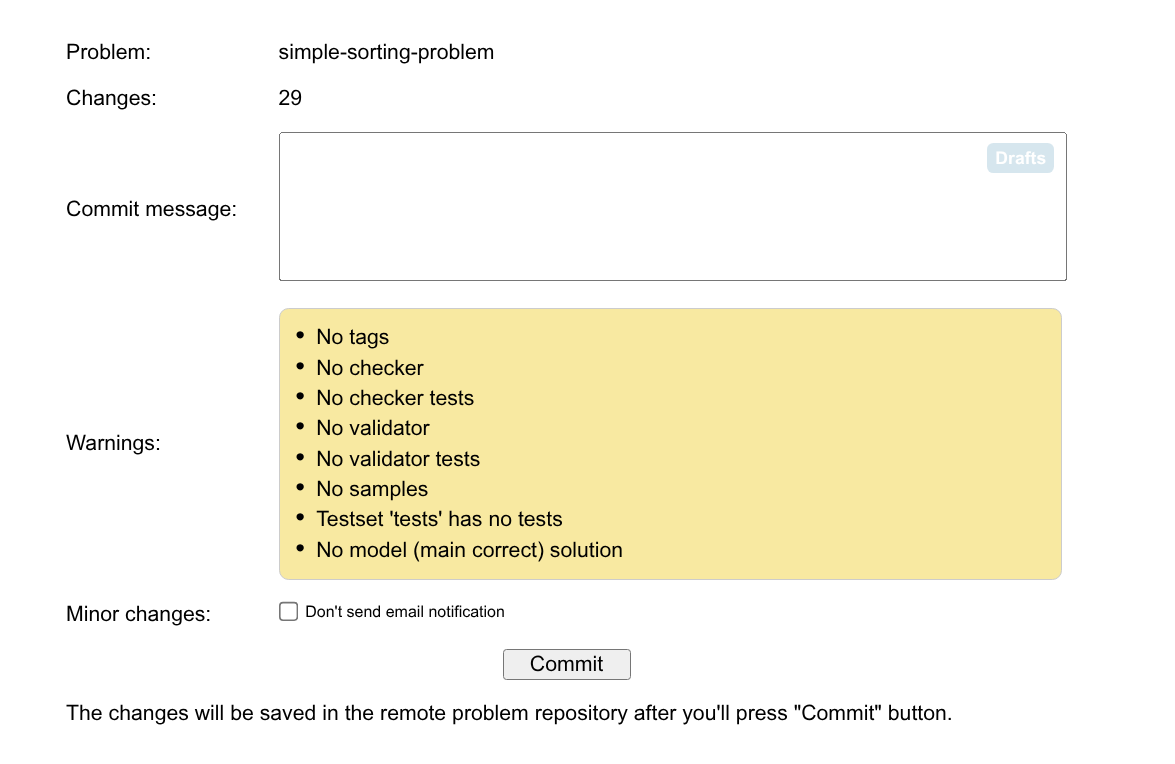 默认情况下,每次进行提交,系统都会给所有有该题目权限的人发邮件,告诉他们你进行了这些修改(你自己也会收到邮件)。