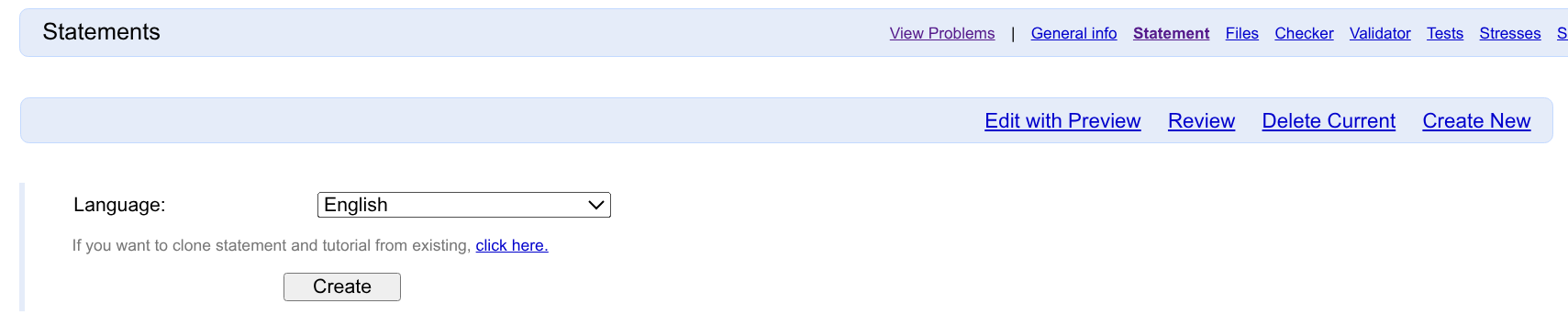 点击上方的 Statement,即可跳转到编辑题面的页面。此时你需要选择一种语言,并创建题面。