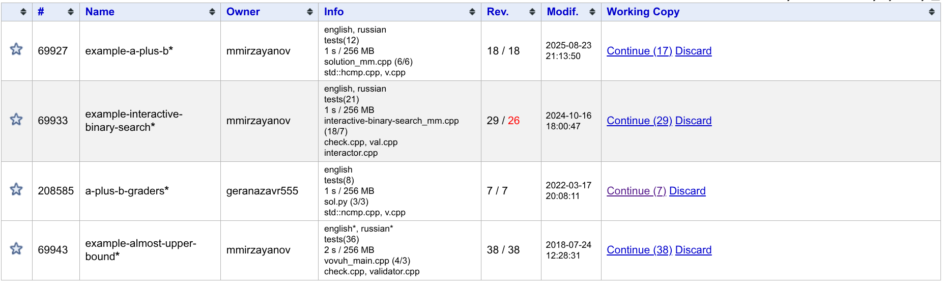 如果你希望舍弃掉所有没有 commit 的修改,回到 View Problems 页面,并对该题目的 Working Copy 一栏点击 Discard 即可
