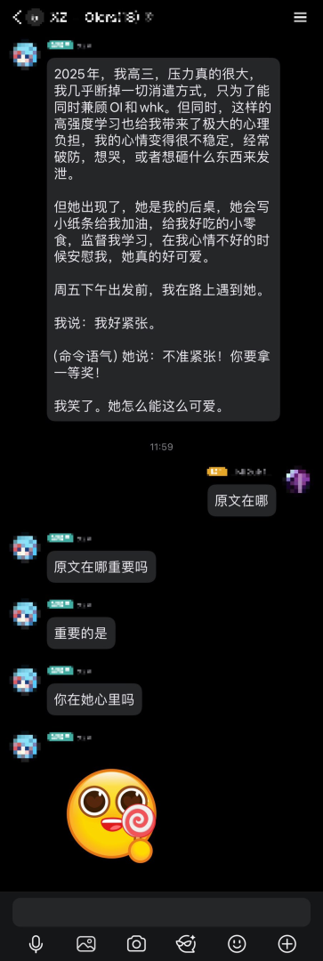 中午离开了 xzyz,出发盐城。晚上继续瞎看题打模板,以及在群里疯狂抽搐发电: