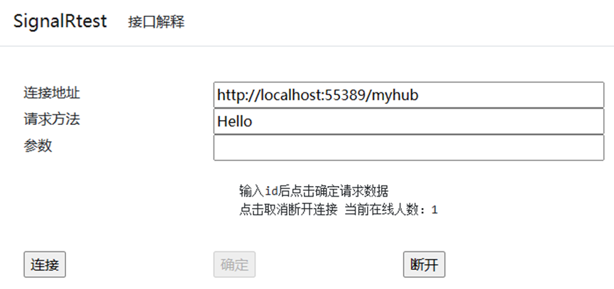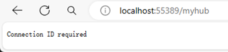检查上述配置是否成功,打开项目之后,跳转到myhub(自己定义的路径)来检测,如果页面上出现Connection ID required就证明后端配置完全正确。