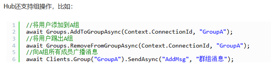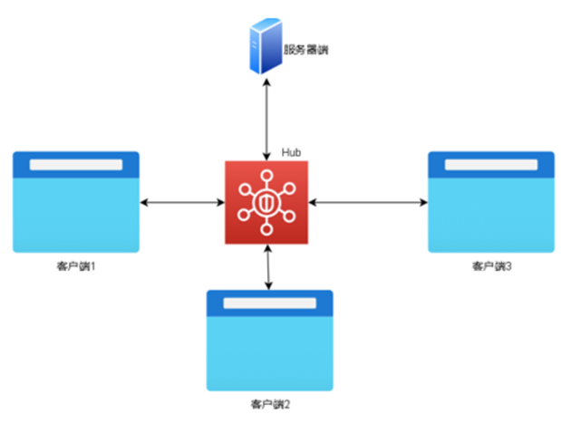 说明:Hub基于RPC(远程服务调用),接受从客户端发过来的消息,也同时负责把服务端的消息发送给客户端。客户端可以调用Hub里面的方法,服务端可以通过Hub调用客户端里面的方法。