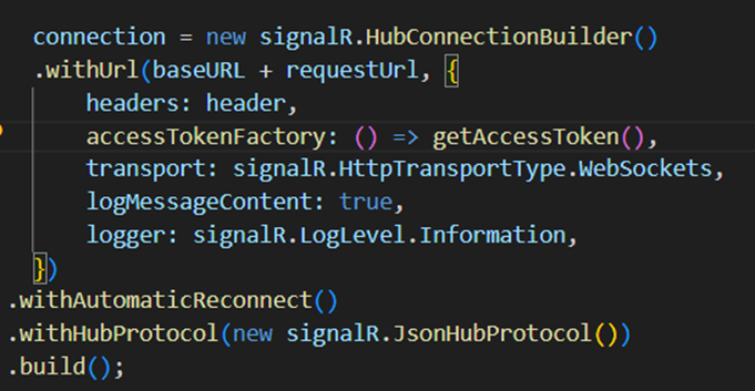 上述代码中的accessTokenFactory回调用于获取access_token的,会在每次请求时调用以保证获取最新的access_token。