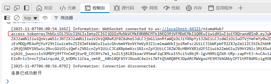 另外,核心原则:URL 参数access_token的值必须是纯 JWT 字符串(无引号、无Bearer 前缀),如下图所示。