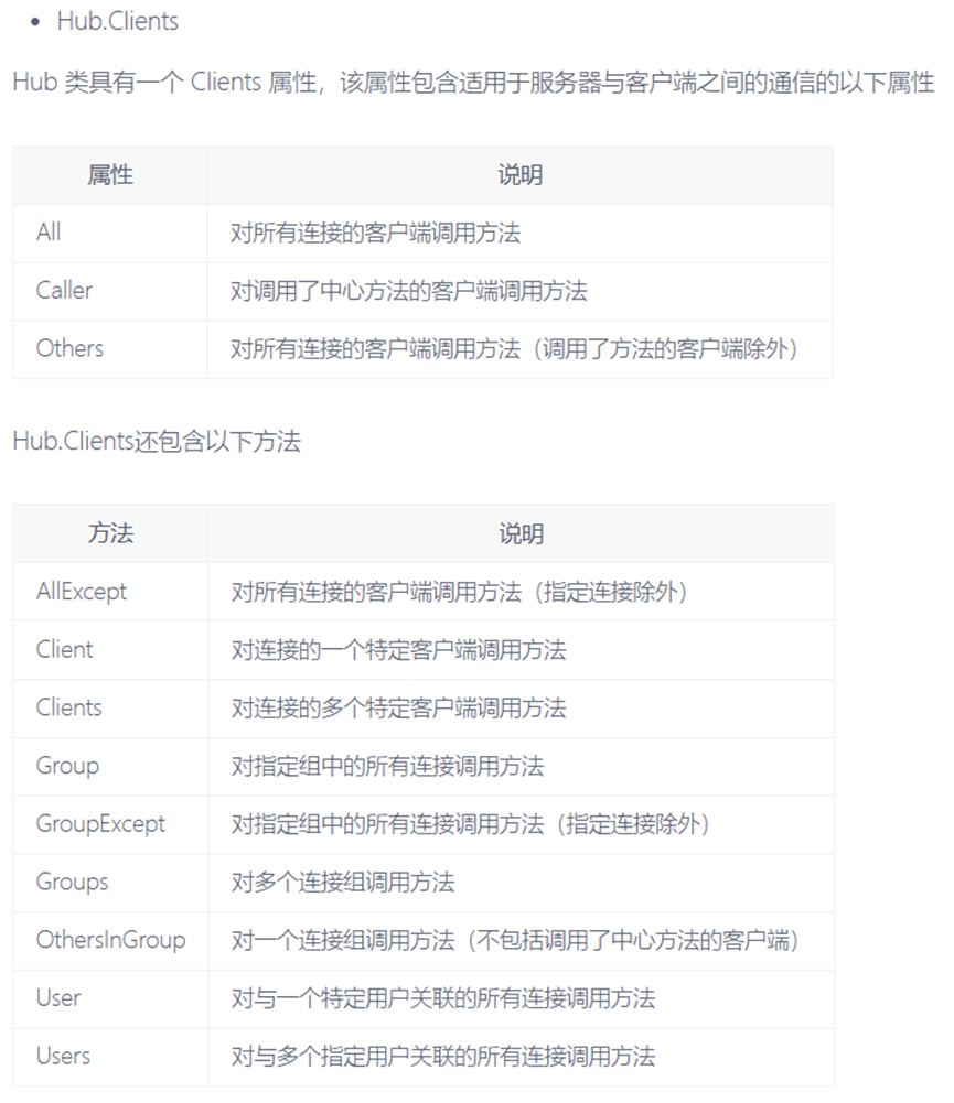 还要说明Caller与其他客户端通信对象的区别,比如Clients.All是给所有客户端,Clients.Group是给某个组,而Caller仅针对当前调用者,确保用户理解其针对性。