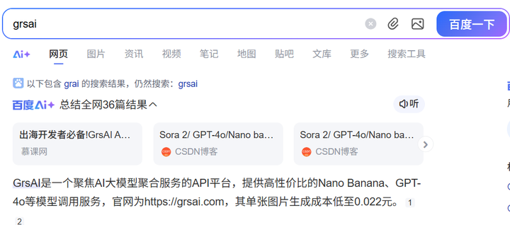 精准触达:当开发者在百度搜索相关问题时,我的文章成为了他们的“答案”,并自然地将高意向流量引导至GrsAi API平台。