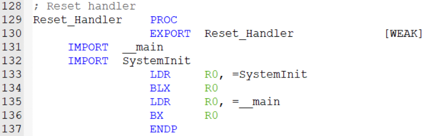 从 0x0000 0004 读出 Reset_Handler (程序的入口)地址,跳转到该地址,开始执行用户代码