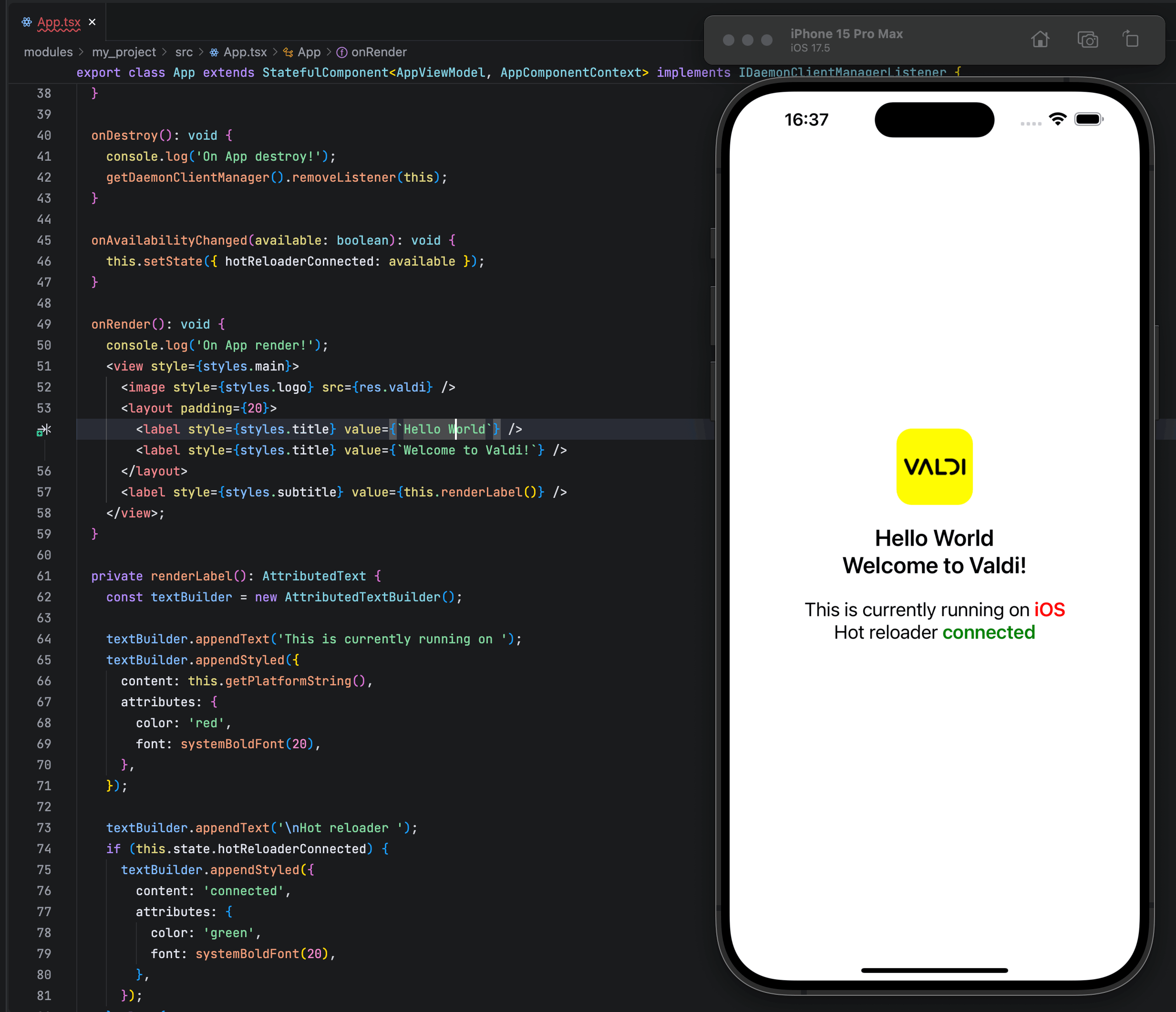 使用 TypeScript&TSX 编写 UI,可以直接编译成 iOS、Android 和 macOS 上 由 Native 渲染的视图应用,无 JS 中间层。